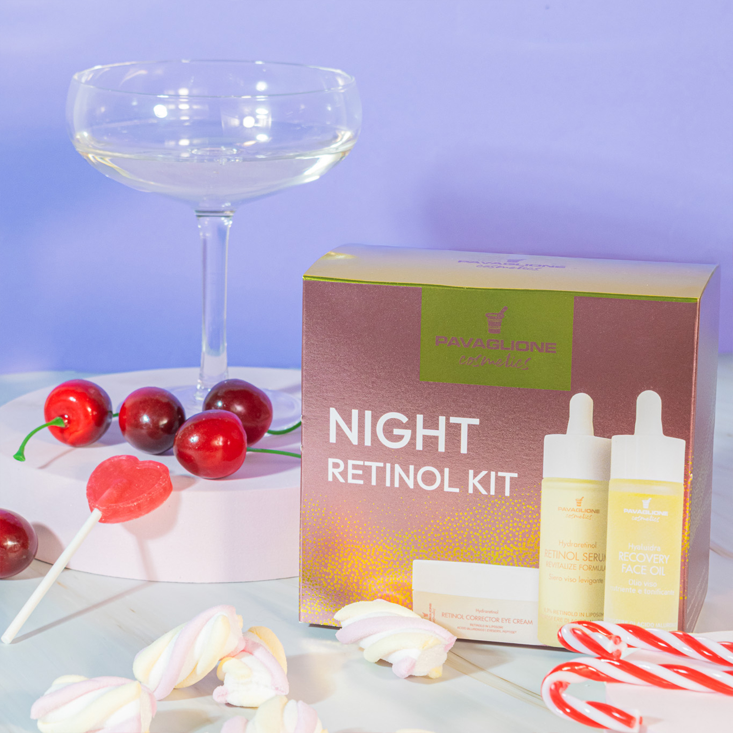 Night Retinol Kit è composto da Retinol Serum Revitalize Formula e Retinol Corrector Eye Cream della linea Hydraretinol, e Recovery Face Oil della linea Hyaluidra. Il kit è pensato per agire mentre dormi. Distende le rughe e uniforma l’incarnato, per una pelle più omogenea e radiosa.